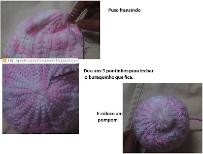 Do ponto bonito aplicado no casaquinho e touquinha de bebê. Já vou montando os pontos necessários para um gorrinho tamanho RN. Espero conseguir passar a ideia.